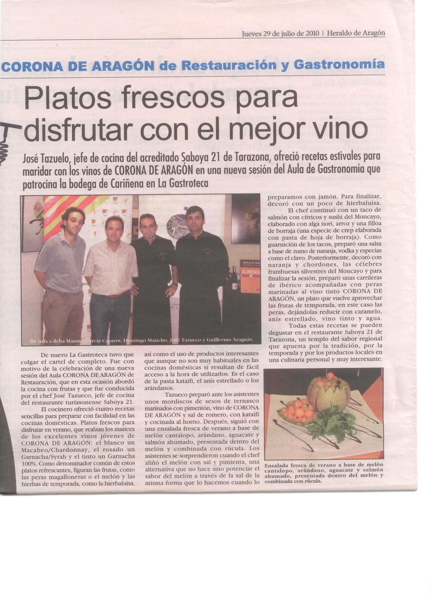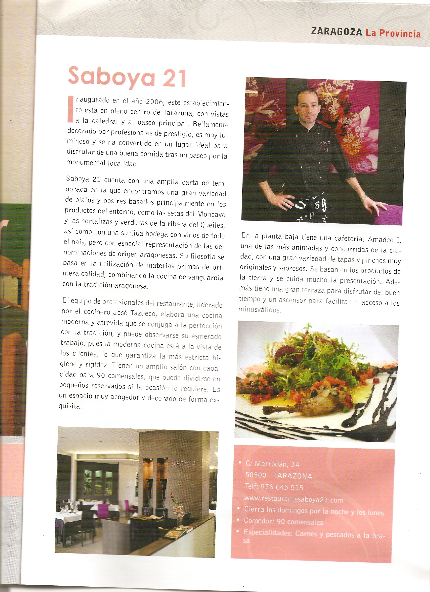 Vídeo del programa "Gourmetmanía" de Aragón Televisión en el que la presentadora hace una entrevista al cocinero José Tazueco y elige al restaurante Saboya 21 como "Mi rincón Favorito" de la ciudad de Tarazona. Emitido en octubre de 2008