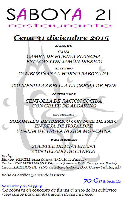 La ultima noche del año donde vas a ir!!!pues a Saboya21 claro que si ven y disfruta de este menu y la fiesta con karaoke nochevieja 2015 . .